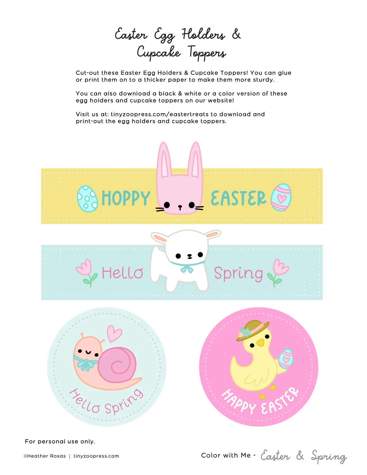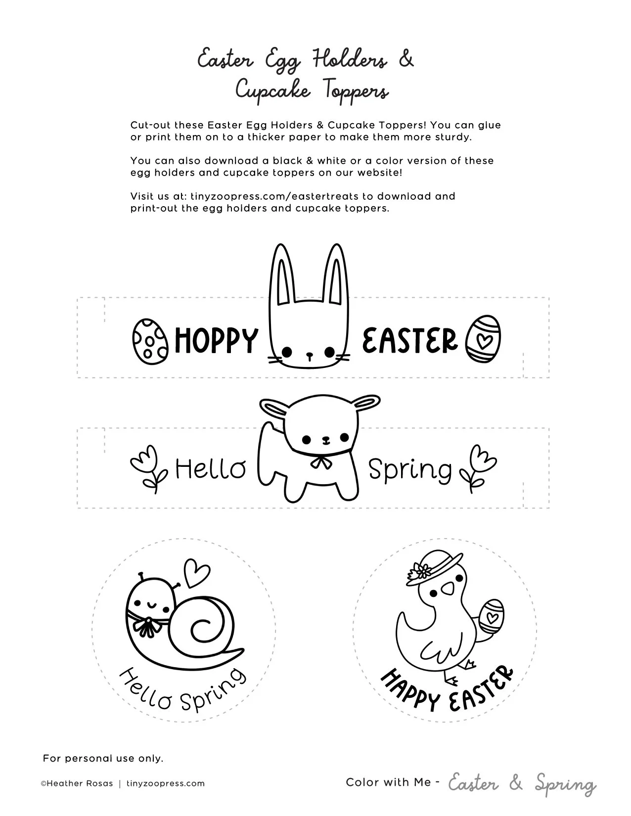 Click on the images below to download the Easter Egg Holders and Cupcake Toppers Download, print, color, and cut-out. For personal use only. All Images ©Heather Rosas